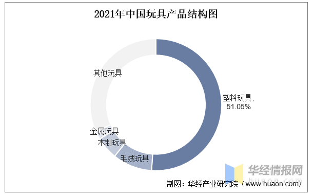 我國是全球最大的玩具制造國,在世界玩具市場上占有舉足輕重的地位。從材質上看,塑料玩具是我國玩具市場第一大細分品類,2021年塑料玩具的市場份額約為51.05%